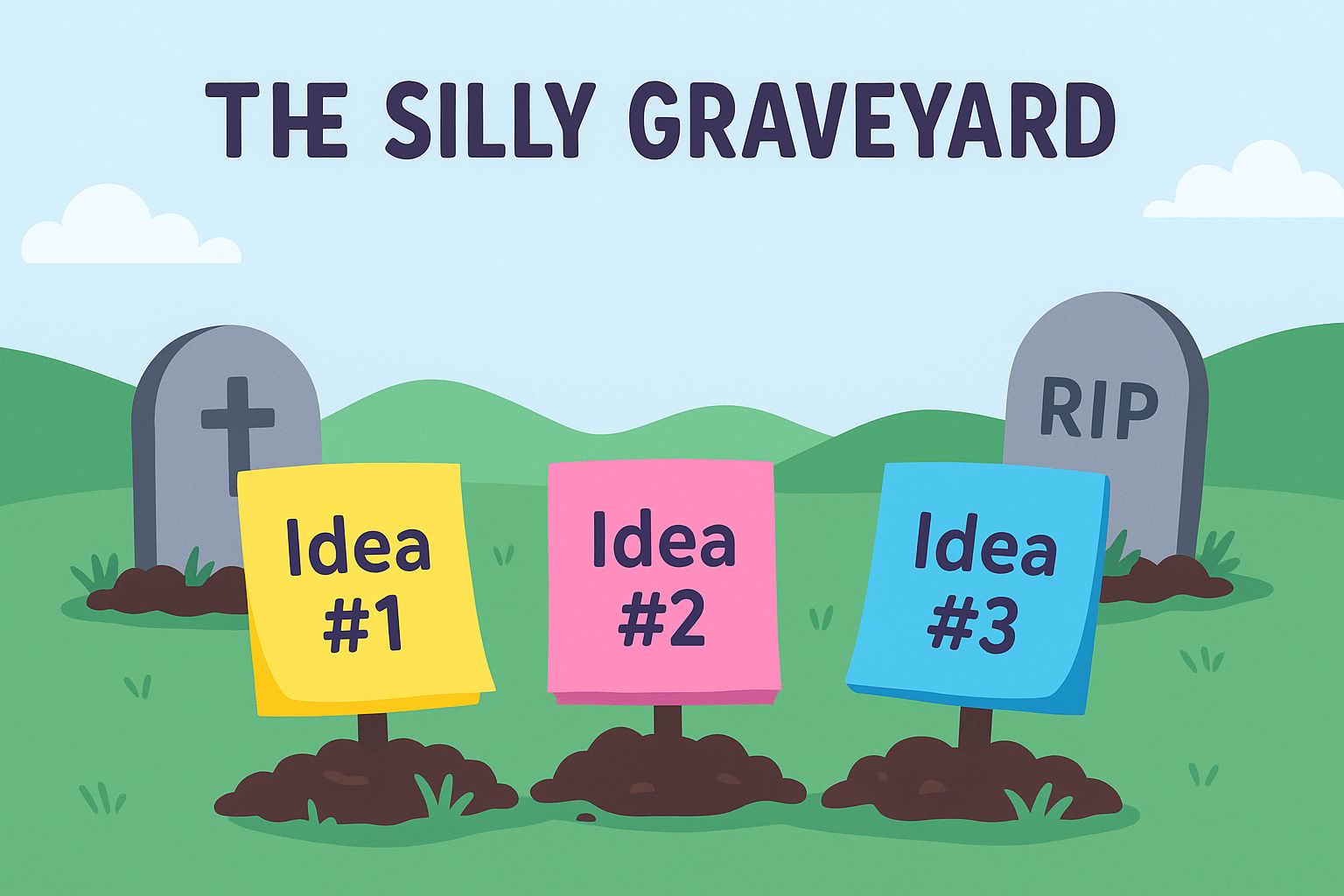 Use The Silly Graveyard as a place to ‘lay your ideas to rest’ — no longer swirling in your brain as “what-ifs” but now in an interim place — expressed to one form of ‘completion’ without needing to exist in the world with utility.